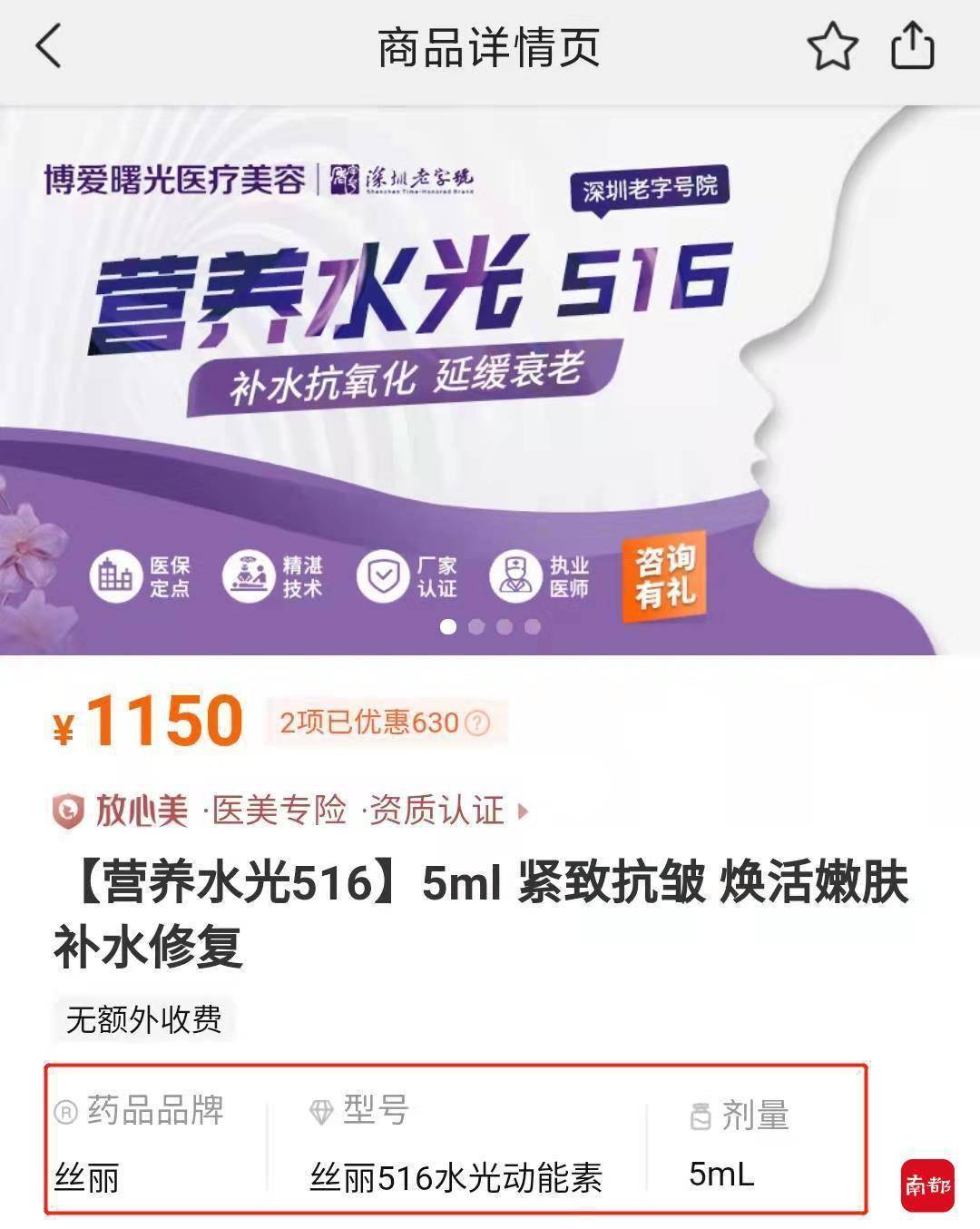 某团博爱曙光医疗美容机构销售的水光针显示品牌为丝丽。